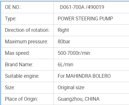 • Product ID:power steering pump for MAHINDRA BOLERO(TWO HOLES) D061-700A /490019